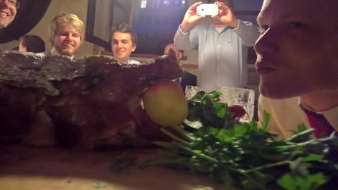 Waar de helft van de groep de volgende dag de engelstalige Corporate tour kreeg, verdiepte de andere helft zich in de echte geschiedenis van de stad met de historische highlights in het bairisch. Een gezamenlijke lunch bood eindelijk kans en rust voor een moment van retrospect en prospect door Praesidia, Commissies, Besturen en natuurlijk de Fuchs! Na de nodige Freizeit brak het laatste avondmaal aan, en wel in de vorm van een hoffelijk bachanaal met menig 'Prosit' in de prachtige festsaal van het HofBräuhaus, onder feestelijk gezwiep en gezweep van de lokale zweepspelers. Hierna waaierden de Heeren uit in het nachtleven van München (of voor sommige Actieven het hotel...) waar menig Heerwaardig gesprek nog tot diep in de nacht werd voortgezet.... Om de volgende dag weer lekker brak 8 uur in de auto door te brengen....