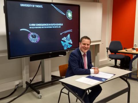 Zijn werk over de impact van digitale HRM tools in het Nederlandse onderwijs werd beloond met een mooie 8.